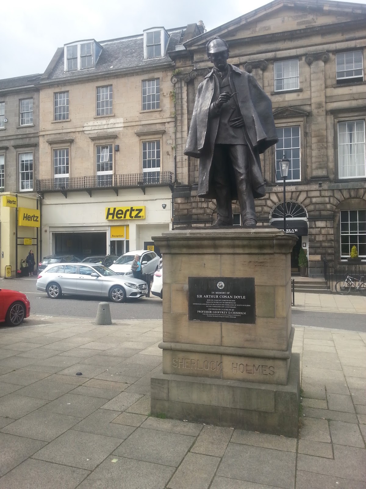 We ate a large late lunch at the Conan Doyle pub, which is close to the author’s birthplace (which, unfortunately, is now a car rental agency, the house having been demolished years ago).